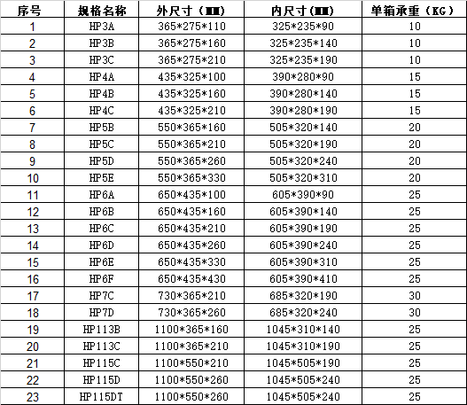 HP系列標(biāo)準(zhǔn)箱是本田汽車(chē)公司推廣使用的標(biāo)準(zhǔn)物流箱。本系列產(chǎn)品周轉(zhuǎn)便捷、堆垛整齊、便于管理,同時(shí)又具有耐油、耐酸堿、適應(yīng)環(huán)境溫度廣(-25°C----+60°C)等優(yōu)點(diǎn),因而適用于企業(yè)物流中的倉(cāng)儲(chǔ)、流通、加工制造等閉環(huán)回路配送系統(tǒng)。主要使用于本田汽車(chē)主機(jī)廠及其配套單位。